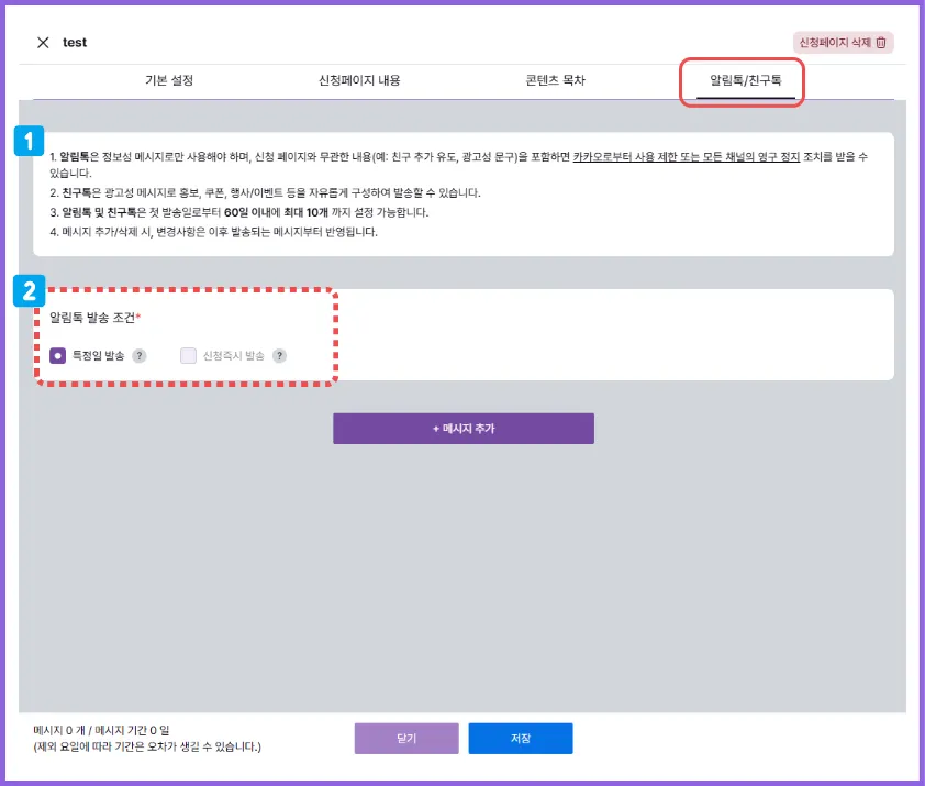 광고·마케팅용 메시지는 반드시 친구톡으로 설정해 주세요.