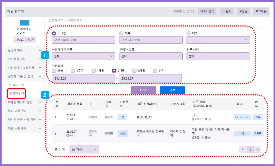 원하는 신청자의 조건을 선택한 후 검색합니다