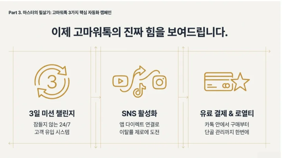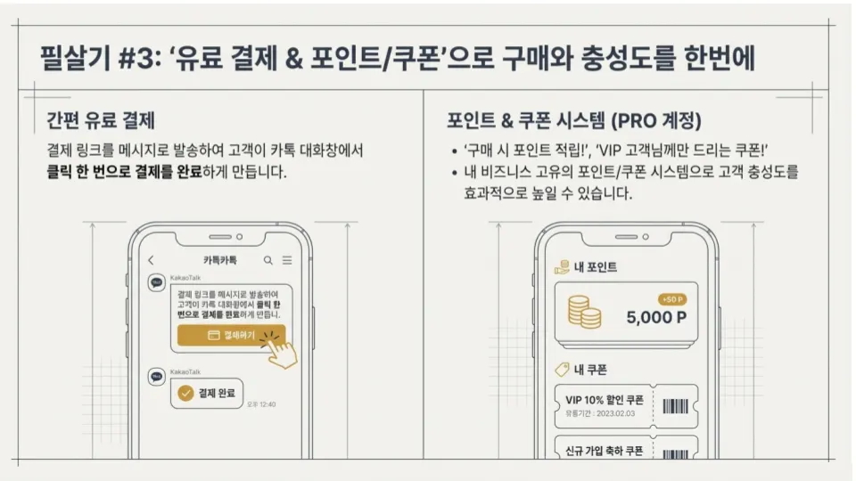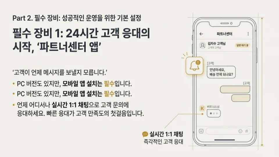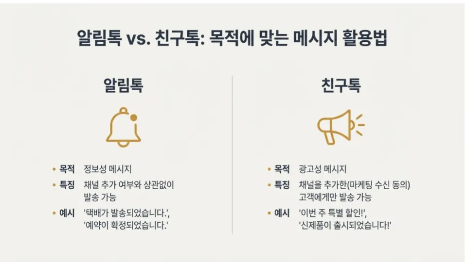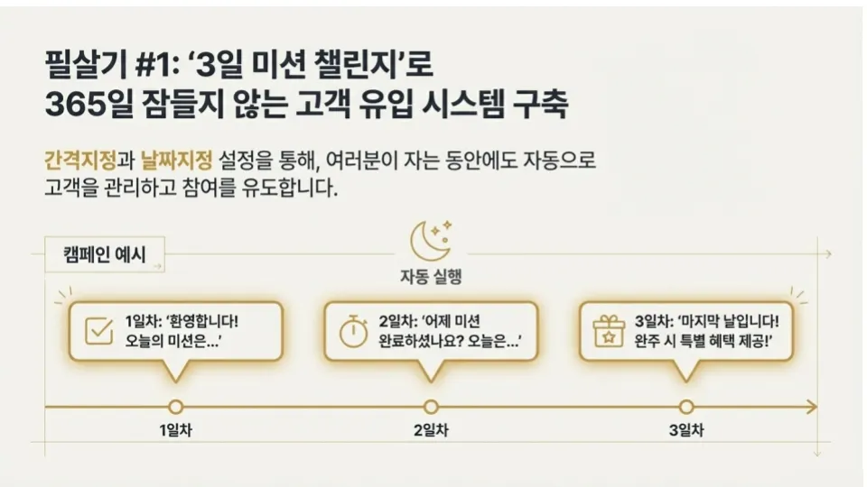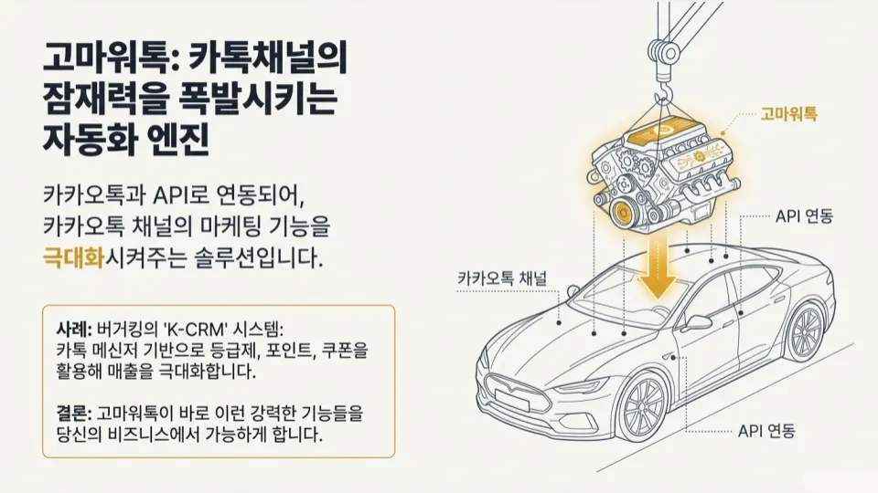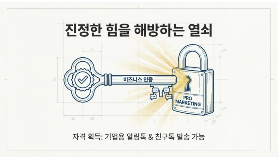: 비즈니스 채널 인증을 통한 알림톡·친구톡 발송 권한 확보부터, 24시간 간판인 채팅방 메뉴의 'N' 뱃지 설정 및 1:1 채팅 최적화 방법을 다루었습니다.